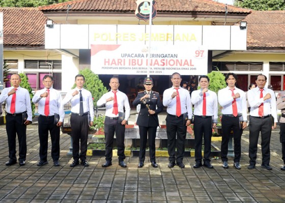 NEGARA, NusaBali - Bertepatan dengan peringatan Hari Ibu, 22 Desember 2025, Polres Jembrana menggelar upacara bendera. Kegiatan ini dirangkaikan dengan pemberian penghargaan kepada sejumlah personel berprestasi di lapangan Mapolres Jembrana, Senin (22/12) pagi.